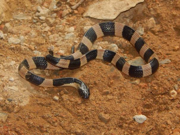 Tên tiếng Việt: Rắn cạp nong Tên Khoa học: Bungarus fasciatus (Schneider, 1801) Tên khác: Rắn đen vàng. Đặc điểm nhận dạng: Thân hình tương đối mập, tiết diện ngang gần như tam giác. Hoạt văn đặc trưng gồm các khoang rộng màu đen và vàng tươi sáng xen kẽ đều đặn từ cổ đến đuôi. Các khoang vàng thường hẹp hơn khoang đen. Đầu nhỏ, phân biệt ít với cổ, màu đen với một vạch hình chữ V hoặc mũi tên màu vàng trên đỉnh. Đuôi ngắn và tù. Sống lưng có gờ rõ do các vảy sống lưng phình to. Đặc điểm sinh học, sinh thái học: Rắn cạp nong (Bungarus fasciatus) là một loài rắn cỡ trung bình, có nọc độc mạnh (họ Elapidae), nổi bật với các khoang đen và vàng rộng xen kẽ đều đặn trên cơ thể. Loài phân bố rộng ở Nam Á và Đông Nam Á. Chúng sinh sống trong nhiều sinh cảnh, từ rừng nguyên sinh, rừng thưa, đồng cỏ đến các khu vực nông nghiệp, vườn cây và đôi khi gần nguồn nước. Là loài hoạt động về đêm và sống chủ yếu trên mặt đất. Thức ăn chính của chúng là các loài rắn khác, thằn lằn, ếch nhái và đôi khi là động vật gặm nhấm nhỏ. Loài đẻ trứng. Tại Khu bảo tồn thiên nhiên Pù Luông, Rắn cạp nong (Bungarus fasciatus) được ghi nhận là một loài hiếm gặp. Loài có mặt ở cả hai khu vực Đông Bắc và Tây Nam, nhưng với tần suất bắt gặp rất thấp ("hiếm" (+)) và phân bố chủ yếu ở các đai độ cao dưới 300m và từ 300-800m. Sinh cảnh ưa thích của chúng là các khu rừng thứ sinh, ven suối và gần khu vực canh tác. Là loài hoạt động về đêm và có nọc độc mạnh, thức ăn chủ yếu là các loài rắn khác, thằn lằn và gặm nhấm nhỏ. Dù được xếp hạng Sắp bị đe dọa (NT) trong Sách Đỏ Việt Nam, quần thể của loài đang chịu áp lực lớn từ nạn săn bắt để lấy thịt, mật và nọc độc, cùng với nguy cơ mất sinh cảnh sống. Do đó, việc tăng cường bảo vệ, kiểm soát săn bắt và bảo tồn các sinh cảnh rừng thứ sinh là rất cần thiết cho sự tồn tại của loài này tại Pù Luông. |